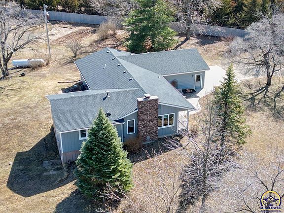 Washburn Rural. WO ranch on 13.5 acres with a pond and trees. Pond never goes dry. 24X16 barn with concrete floor. 5 strand barb wire fence installed in 2021 at a cost of $15,900. Two HVAC sys and 2 hot water heaters. Home has large master suite with sitting area. Beautiful hardwood floors. Lots of improvements: Roof-2022, Bsmt furnace-2020, Main floor heat pump-2017, Lateral field replaced-2007, Replacement windows 2002. Fireplace has a thermostat controlled infureno system. Murphy Bed in 3rd BR. 18x8 finished rm in garage not incl in sq ft. Range, Refrig and Freezer in bsmt stay. Hanging lamps with stain glass shades don't stay.