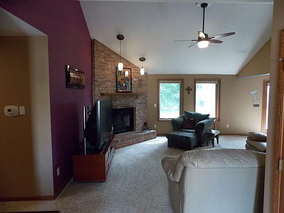 Come enjoy this well maintained 3 bedroom ranch. Custom built with 6 inch walls to keep energy cost down whether it is the peak of the winter or height of the summer. Vaulted ceiling in the living room with angled fireplace makes you feel at home. Large master with vaulted ceiling, master bath and walk-in closet. New furnace in 2010, new dishwasher in 2012 & New microwave in 2015. Open kitchen with tile flooring an updated appliances. New carpet throughout the living room and hallway. Updated paint throughout the home as well. 3rd bedroom could be a den or office if needed. Back yard leads to wooded area with deck and fire pit for all of your outdoor entertaining. There is attic storage above the garage for all your needs. Appliances can be negotiable. This won't last long, call or stop by today!