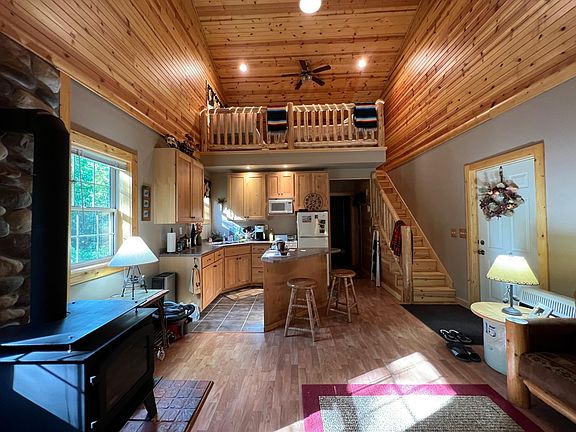 Welcome to this phenomenal Shop+House (Shouse) on 10 private wooded acres in Sandstone. The building features 791 finished square feet of living space built in a 1.5 story framework. There's a loft, master bedroom, and a cozy living room with a fireplace. Main level has an open floor plan. The three season porch is a great spot to begin and end the day. Interior details include knotty pine ceilings and walls, ceramic tile, Kinetico Reverse Osmosis System, and an in-floor heating system. The garage is huge (40x32,) with 12 and 13 foot doors. There's also an oversized driveway, and a storage shed. The land is almost all high and wooded. There's road frontage on two sides. It's surrounded by wildlife habitat, and there's plenty of room to hang some deer stands. The boat launch to Grindstone Lake, one of the best fishing lakes in the area, is just a mile away. It's an easy commute, just 1:20 from the Cities. Check out this awesome Shouse/Barndominium in Pine County, Mn !!!