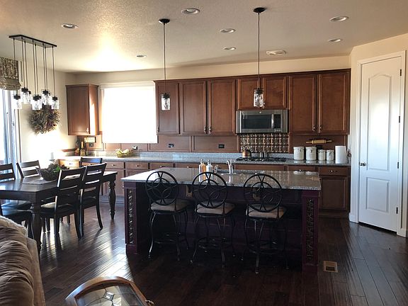 Beautiful Open Floor Plan Walkout Rancher in Move-In Ready Condition. Hand scraped hardwood flooring and tile. Tall coffered ceilings, 8' doors. Granite and Quartz counters throughout, custom wood architectural trim including window surrounds. Formal entry Foyer. Gourmet Kitchen with granite, island/bar, Large island counter eating area plus dining table and walkout to deck, pantry, wall of 42 cabinets with crown molding, lowers all with center pull out shelves. 5 burner gas cooktop with pressed copper backsplash, double conventional/convection oven. Five large Bedrooms plus Office, Master En Suite, Bedroom suite with sitting room and 3rd bedroom all on the main level. 3 Full Baths. Finished 10’ ceilings in walkout lower level with bar, built-ins, huge storage area and room for a 6th Bedroom. Oversized Deck, lower patio with B-Dri ceiling, lovely fenced rear yard with pergola, separate deck sitting area, raised planter beds, paver walkways. Certified Green with air circulating vent system saves on air conditioning bills. 1 block from Longview Park. 1 mile from community center. 10 miles of hiking/recreation trails. Wonderful community. HOA includes Water usage and Membership to Meridian Ranch Community Center
