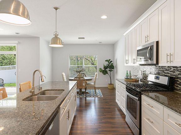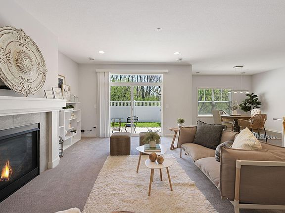 Live in your own quiet, natural oasis with none of the maintenance. This 3-bed / 2.5-bath end-unit townhome welcomes you in with its sunny & spacious main level, including a living room with a fireplace and an open-concept kitchen with a large island and views of the wooded backyard. Upstairs, the primary suite has been updated with dual vanity, deep soaker tub, stunning tiled standing shower, walk-in closet, and serene balcony overlooking the fully privacy-fenced patio/yard space in a beautifully pastoral setting. Complete with in-unit laundry and a wide 2-car garage, and just steps from Luce Line Trail and Medicine Lake, there's nothing missing from this one-of-a-kind townhome in the trees. owners pay for water, sewer, and trash as well as outdoor maintenance