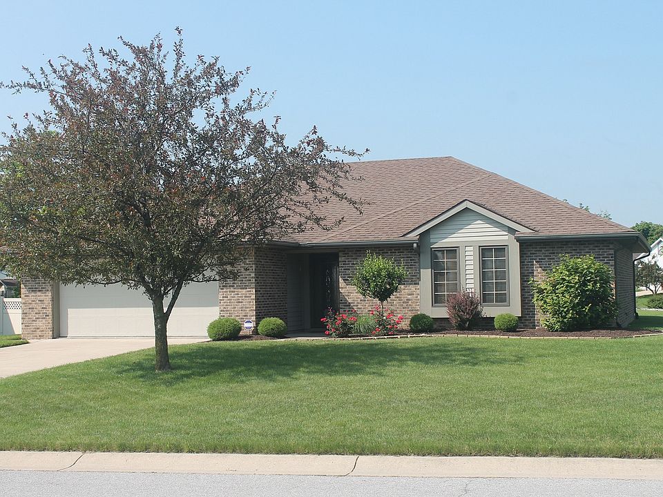 GORGEOUS AND UPDATED ranch located in River Bend Bluffs in the Leo School District! This home features 3 bedrooms, 2 full baths, a wood burning fireplace, a wood and brick exterior, a cathedral ceiling in living room, a tray ceiling in master bedroom, a vaulted ceiling with a sky light in master bathroom, crown molding in two spare bedrooms, a two car garage, custom cabinets, solid wood doors, and porcelain tile in kitchen, nook, and bathrooms. The home has been updated since 2011 with the following new items: refrigerator, dishwasher, microwave, all door handles, kitchen and master bathroom counter tops, cabinet hardware, light fixtures throughout, carpet throughout, installation of ceiling lights/fans in all bedrooms, toilets, fireplace doors, attic fan, 10'x10' shed, fence, programmable thermostat, recessed LED lights in kitchen, buried down spouts, landscaping, painted throughout, fireplace cap, main water shutoff valve, and window treatments throughout. The association is extremely friendly, and offers a pool, a pond, tennis courts, and a paved nature trail! The home is in a fantastic location within 3 miles of Parkview & Dupont Hospitals, I-69, I-469, and restaurants. Don't miss your opportunity to own this home.