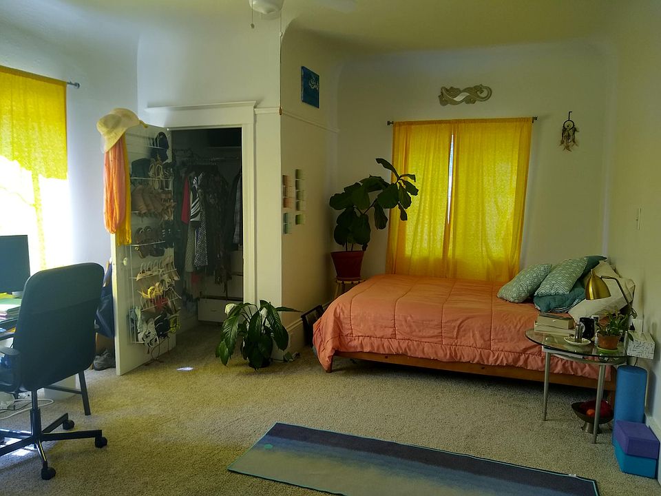 A large room is available in a 1600 sq ft house from Nov 1st March 31st with a possible lease renewal or month to month, depending on what the group decides. About the room: The room is large (209 sq ft) with natural sunlight and a big closet with a built-in dresser and a few shelves. Move-in costs include monthly rent of $1130 with a $1295 deposit. About the house: You'd be living with two quiet and chill Cal PhD students (one cis hetero woman and the other queer woman) who are seeking similarly quiet and chill folks to move in. We are LGBT+ friendly and have been taking COVID regulations fairly seriously. The house is a spacious 3 bed/ 2 bath downstairs unit (part of a duplex) with washer/dryer, dishwasher, gas stove, a large backyard and garden beds for planting. Our landlords live in the upstairs unit and are friendly and responsive. The house is located at the Emeryville/ Oakland border close to the SF bay trail, Target, Trader Joe's Best Buy, Ikea, etc. It's 4 miles south/west of campus and close to major highways. Utilities not included, but are typically $100 per month