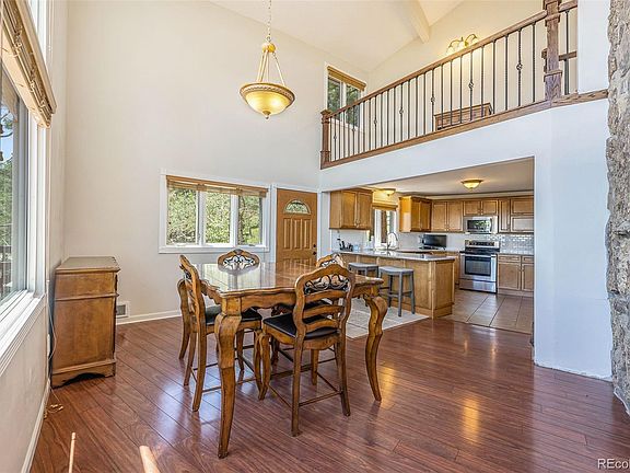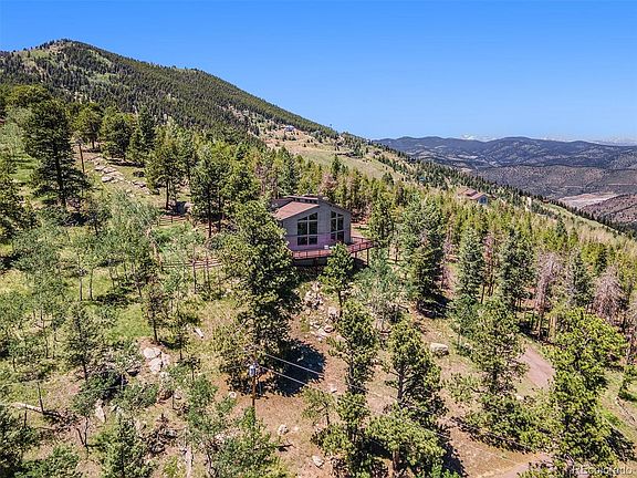 City lights and snowcaps- you'll never get tired of these views! This mountain retreat sits on private 2.6 acres featuring rock outcroppings and a large variety of trees. The outdoor space also features a dog run, a sizable shed, a covered deck and ample space to explore. The home offers expansive windows and a large wrap around deck. The beautiful, yet trouble-free design lends itself to less upkeep and more time to spend outdoors. On the main floor you will enjoy a wonderful kitchen right off the great room which features vaulted ceilings and a massive moss rock gas fireplace. A handy laundry room and a full bath are also located on the main level. Upstairs features a balcony area and three considerable bedrooms with a three-quarter bath. The downstairs is currently used as a workout room but could also be a workshop, media room or other special interest space. This is mountain living at its best!