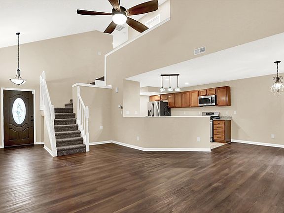 Great location! This 2 story, 3 bedroom, 2.5 bath home with attached 2 car garage is located at the end of the street and right next door to the park! This home invites you in with the cathedral ceilings and open floor plan. The kitchen and dining room offer a view of the backyard through the glass sliding door. The kitchen features stainless steel appliances and granite counter tops. All bedrooms are located upstairs with the primary featuring a a walk-in closet and full bath. Enjoy entertaining in the spacious fenced-in back yard, complete with a large brick patio. This home is move-in ready!