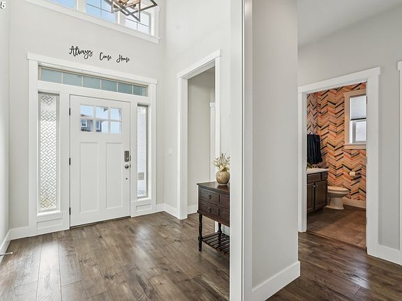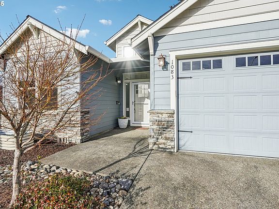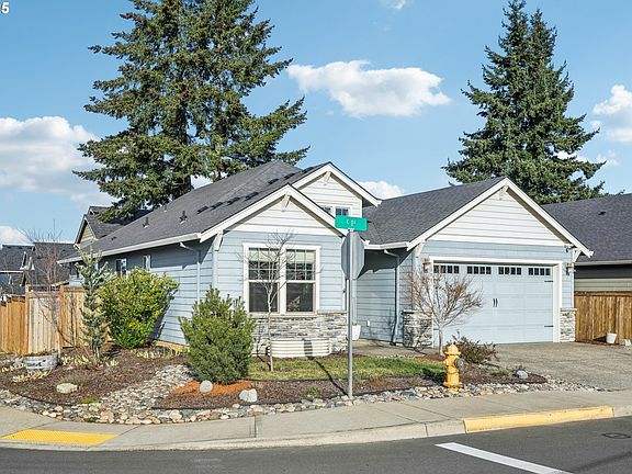 This beautiful home offers an ideal floor plan with three bedrooms and two bathrooms. The upgraded kitchen is a chef's delight, showcasing quartz countertops with a central island, sleek stainless-steel appliances including a double oven and a Bosch dishwasher. There is a convenient pantry and ample cabinets for storage. The kitchen flows seamlessly into the vaulted great room, anchored by a cozy gas fireplace and floor to ceiling windows, creating a spacious and inviting atmosphere. The vaulted primary suite provides a luxurious retreat with a large shower, walk-in closet, and quartz topped dual vanity. The home features 9-foot ceilings throughout. In addition, this home boasts numerous high-end features and thoughtful upgrades. Upgraded designer lighting illuminates the elegant quartz countertops and the custom Hunter Douglas Duette top-down/bottom-up blinds provide privacy and light control. Relax on the custom-built covered deck and appreciate the mature landscaping, lovingly upgraded by the current owner, enhancing the corner lot's curb appeal. While some temporary wallpaper adds a touch of personality, it is easily removable. Finally, select furniture items are negotiable, offering a seamless move-in experience.Enjoy year-round comfort with a sophisticated climate control system including electric heat and a heat pump. Adding additional value, the property has been outfitted with a 90-gallon propane tank that provides fuel for both the living room fireplace, as well as a quick connect fitting for a generator (with a dedicated electrical plug) ensuring comfort and convenience even during power outages. The spacious garage features overhead storage, a utility sink and access to the backyard. The property has a desirable RV parking space on a quiet street in a well-manicured neighborhood, conveniently located just minutes from downtown Estacada, schools. and other outdoor recreation. Come see this stunner for yourself!