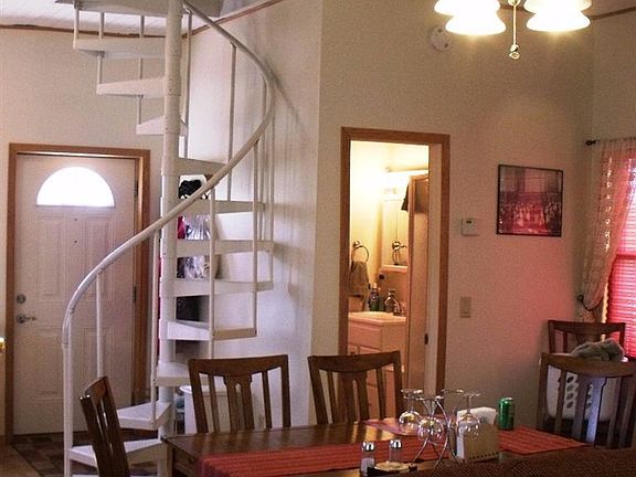 Old school house made into cozy getaway -- spiral staircase brings you to upstairs bedroom with Queen-Sized Bed. Enjoy mountain and farm views from deck. Additional sleeping provided by pull-out sleeper couch in Living Room.