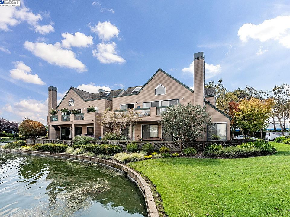Completely renovated, upper Ketch model turned masterpiece! This 2BS/2BA condo has stunning water views that pour in from a wall of glass doors that lead to a balcony. Located on the 2nd floor, this home overlooks the lagoon; facing the estuary with a beautiful marina. Vaulted ceilings, wood-burning fireplace, dining room, & a beautifully remodeled kitchen. You will be impressed by the work done: walk-in pantry, gas range, gorgeous granite counters, rich cabinetry, & beautiful HWFs. There is a wealth of storage in this 1,443 sq ft property. The hallway has floor to ceiling shelving, and the bed/baths have closet space galore with built-in organizers. The primary en suite has direct balcony access overlooking the lagoon. The bath features a dual vessel sink vanity, elegant tiles, & a steam room shower. The 2nd bath is also newly remodeled & is adjacent to the guest bed or home office w/outdoor deck. In-unit washer & dryer, 1-car garage