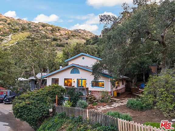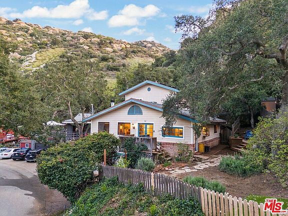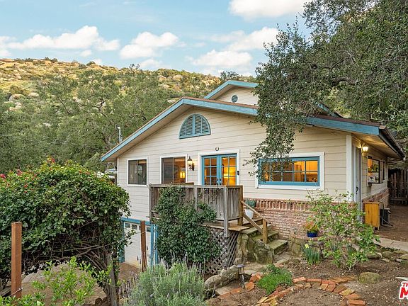 Welcome home to this super charming 4 bed / 2 bath 2-story home with views in the heart of Santa Susana Knolls in prime Simi Valley! As you enter through the beautiful gated bougainvillea archway, a stone stairway and path leads you to this storybook home. Upon entering, you'll find light pouring in through the windows in this open floor layout. Easy French door access to both from the open living room with fireplace opens to the patios allowing for that California indoor/outdoor living! The updated kitchen includes stainless steel appliances including brand new oven and microwave. Three bedrooms (one turned into a movie theater/movie room) PLUS a bonus office and laundry room, and full bathroom round out the downstairs. A grand staircase leads you up to the sprawling primary suite which takes up the entire 2nd level and includes a large en suite bath and huge walk-in closet. From the primary suite you can access the breathtaking backyard with multilevel decks with stunning and breathtaking views of the mountain landscape. The Santa Monica Mountain Conservancy backdrops offered unparalleled privacy and serenity. Brand new security system with ADT and ring solar installed. Solar panels are OWNED! Electric bill is super low monthly. Some of the upgrades in this super gorgeous home include new paint in every room - including the bathrooms, new flooring downstairs, a new toilet downstairs and also bidets in both bathrooms were installed, and custom blinds on all windows and door - $6k value! This home is move in ready, and there is still room to make it your own! The driveway and 2-car attached garage allows for ample parking. This is truly a gem and you do not want to miss it!