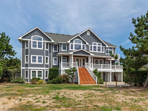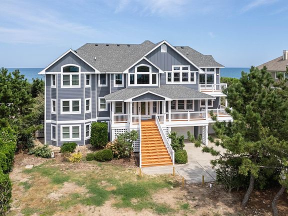 Gorgeous and exceptionally well-maintained six-bedroom home on the oceanfront in the heart of Whalehead. Owned by the same loving family since built in 2001, this property boasts an extensive home amenity list, breathtaking views of the Atlantic, and a thoughtfully designed floor plan perfect for a second home, investment property, or full-time residence. On the top floor, an open concept living room with beautiful hardwoods and gas fireplace is surrounded by windows showcasing views of the water. A well-equipped gourmet kitchen features dual ovens, two dishwashers, a Viking gas stove, ice maker, large sub-zero refrigerator, and bar-top seating for four. The spacious dining room with seating for ten, in addition to the sunroom and half bath serve as the perfect set up for hosting large groups of friends and family. The top floors en suite includes a sitting area, flat-screen TV, private deck access and a spacious bathroom with whirlpool tub, separate steam shower, powder room with bidet and dual sinks. A grand stairwell leads you down to the second level where you'll find the den with a custom bookshelf, wine storage and direct deck access, three en suites, a spacious office w/ direct deck access to the hot tub, and laundry room with washer and dryer. On the ground level, a large media room w/ flat screen TV, kitchenette w/ sink, dishwasher, full-size refrigerator, mini-microwave and free-standing ice-maker, two bedrooms, a full bathroom, and laundry room w/ utility sink, washer and dryer. Enjoy the convenience of direct beach access leading to the wide white sandy beaches of Corolla, privacy found by the 30x16 private pool with a poolside bar, gas grill, fish cleaning station & two outdoor showers, an elevator from the ground floor up, attached two car garage, and ample storage found both inside and out. Take a stroll or quick bike ride to Corollas local shops and dining nearby, walk the Currituck Beach Lighthouse, or experience an afternoon on the 4x4 to watch the wild horses roam.