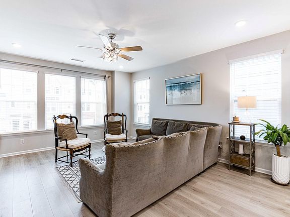 This exquisite end unit townhome, a jewel in Ellis Crossing, offers a unique blend of modern living and serene nature views. Boasting four spacious bedrooms and 3.5 luxurious bathrooms, this townhome caters to both comfort and style. The heart of the home, a pristine gourmet kitchen, seamlessly flows into an inviting family room and dining area - perfect for entertaining or quiet evenings. Large windows bathe these spaces in natural light, enhancing the tranquil views of the surrounding greenery. Every inch of this home speaks to its thoughtful design, from the 9 ft ceilings on each floor to the sophisticated office space, enclosed by elegant glass French doors. Tile floors grace all full bathrooms and the laundry room, blending practicality with style. Flexibility is key in this layout, with a bonus room complete with a full bath that can effortlessly transform into a fourth bedroom, guest suite, or additional entertainment area. Step outside to find a rear deck and patio, ideal for enjoying the peaceful outdoors or hosting barbecues. Convenience is at your doorstep, with the townhome being a pleasant walk away from the dog park and playground. A short drive leads you to the community's heart, where you can indulge in the clubhouse, an indoor pool, and a 24-hour fitness center. Further enhanced by a spacious two-car garage, this townhome not only meets but exceeds the expectations for modern living. Here, luxury, convenience, and nature converge to create a living experience that's truly unmatched. Make this haven your new home and immerse yourself in the best that Ellis Crossing has to offer.