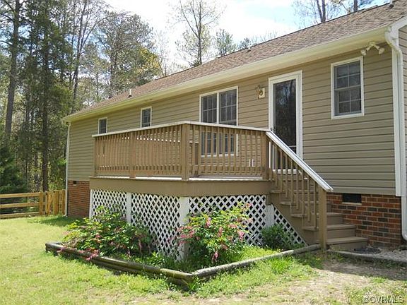 Better than new, great starter home - this home has been freshly painted, very clean, new hardwood flooring in living room, hall and kitchen. Large eat in kitchen with beautiful white cabinets, all appliances match and they all convey, washer, dryer, refrigerator (Whirlpool with Ice and water in door), dishwasher (Whirlpool Quiet Partner 1), microwave and range. First floor Master with nice bath and very large walk in closet. Spacious bedrooms with large closets. Ceiling fans in most rooms. Upgraded dimensional roof looks like new. Full front porch and the back deck has just been stained/painted, fenced back yard perfect for a family or family pet, this home is move in ready. Enjoy the privacy on 3 acres mostly wooded, yet only 20 mins. to Mechanicsville, and only 4 miles from intersection of 360 and Rt. 30.