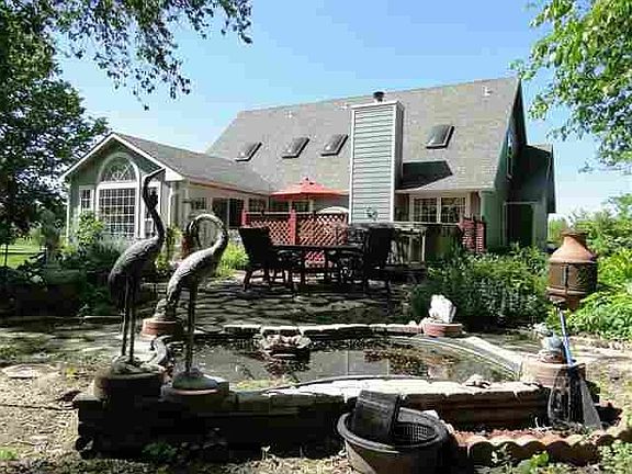 Just minutes south of Lawrence near Eagle Bend golf course. Beautiful 3.3 acre setting. Wooded paths through trees to stream. 1.5 story home. Main level master suite. 3 BR plus a bonus room that can be 4th BR or used as a large home office with separate exit. Updated & maintained. Large sun porch. Large patio that leads to stone paths then to mowed grass paths to stream. 36x30 Morton building with concrete floor. Gardens. High speed internet. Fridge. Front yard to be re-seeded in fall. New front trees.