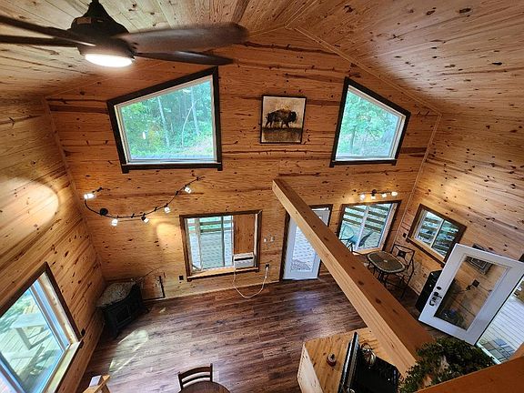 Gorgeous, custom built cabin in Compton AR ~ Solar and propane powered 1200sf newly constructed cabin in the heart of the Ozark Mountains on 4.86 acres with stocked spring-fed pond. Spectacular sunrise view overlooking the Buffalo National River watershed and situated only a mile from the National Park Paige Falls and Broadwater Hollow hiking trail. This 1BR/2BA cabin comes fully furnished with all new furniture, including a sleeper sofa in the living room to make it second sleeping space for guests. Extremely well-built & beautiful craftsmanship using mostly locally sawn lumber, spray-foam insulation, solar panels, 1100ft water well with 2 hp pump, 1250 gallon concrete holding tank with extra pump from tank to the house for fabulous water pressure even in the upstairs, septic system