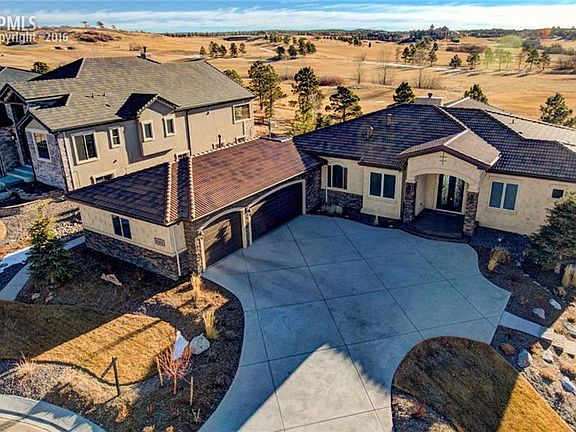 Amazing custom home on the Flying Horse Golf Course-12th hole-with stunning views! Custom built by Tuscany Homes, enjoy the elegant gourmet kitchen; spacious living areas; bright and scenic terrace room; master retreat with spa like bath including a private work out room. Covered concrete deck w/built-in grill and beautiful views. The walk-out basement features a recreation room large enough for entertaining, playing pool or relaxing at the bar. You can't get any closer to the scenic golf course than this! WELCOME HOME! This nearly new custom home backs to the private Flying Horse Golf Course with stunning views! Custom designed, built by Tuscany Homes, enjoy high-end details and craftsmanship. Featuring spacious rooms; elegant gourmet kitchen; large living areas; bright and scenic terrace/sun room; master retreat with spa like bath including a private work out room and large walk-in custom closet. Covered concrete deck with built-in grill and beautiful golf course views. The walk-out basement features three additional bedrooms, two baths including steam shower, a huge recreation room with space for entertaining, playing pool, games or relaxing in front of the fireplace or at the stone-detailed bar. Large storage room is 90% finished and could be additional bedroom. Garage is oversized, heated, finished and includes a bright work space. You can't get any closer to the beautiful, top-rated golf course than this! Minutes to I25 and easy commute. Close to shopping, dining, business, Santa Fe trail hiking/biking trails. Coveted D20 - Discovery Canyon school. WELCOME HOME!