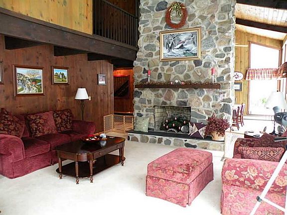 This contemporary home also has rustic charm. Stone fireplaces and lots of wood make this country home cozy and welcoming. Lots of glass for great views of the property. Beautiful HW floors throughout main level family room and galley kitchen. First floor bedroom currently used as craft room/office. 'Walk out' basement features additional guest suite overlooking the in ground pool with newer heater. Two detached garages can house up to 4 cars. Home sits well back off the road. Easy access to GCC/SRU