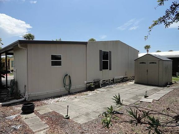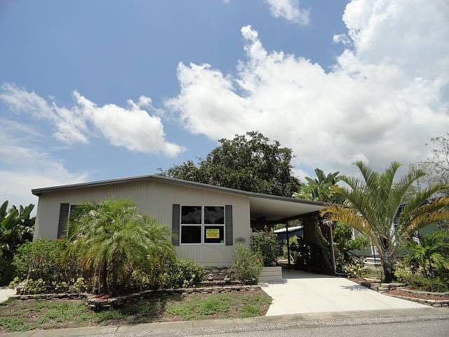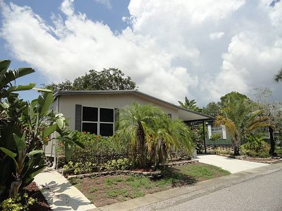 RESPOND TO LISTING AGENT TODAY, for a viewing or more information on this STYLISH DOUBLEWIDE 1/1 home with GORGEOUS KITCHEN and BATH. Located in 55+ community with pool, clubhouse, shuffleboard, full schedule of activities. Three beautiful beaches in Tarpon Springs, in addition to the charming historic town. Convenient to everything, including Pinellas Bike Trail. Last monthly statement of approx. $620/month covered lawn, trash/recycling, pass on taxes. Water/sewer billed bi-monthly according to usage (and were included in last month's statement amount).This park has a rear gated entrance/exit in addition to the front entrance.~~~BEAUTIFULLY RENOVATED DOUBLEWIDE 1/1 with DRYWALL, UPDATED PLUMBING, WATER HEATER (2016 approx.),SOLID FLOORS, OPEN CONCEPT, STAINLESS APPLIANCES, BOSCH DISHWASHER, GORGEOUS BATH w/OVERSIZED SHOWER, GRANITE COUNTER VANITY, HUGE EN SUITE w/VERY LARGE CLOSET. Heated and cooled so efficiently by 2 Quiet Mini-Splits. GREAT CURB APPEAL with Lush Tropical Plants and Shrubs. PATIO behind the home with BONUS SHED. CARPORT parks 2 or use some as Covered Patio. Ceiling Fan on Carport. OVERSIZED ATTACHED SHED has Washer/Dryer Hookups and Lots of Storage. RESPOND TO LISTING AGENT TODAY FOR MORE INFO OR A VIEWING!
