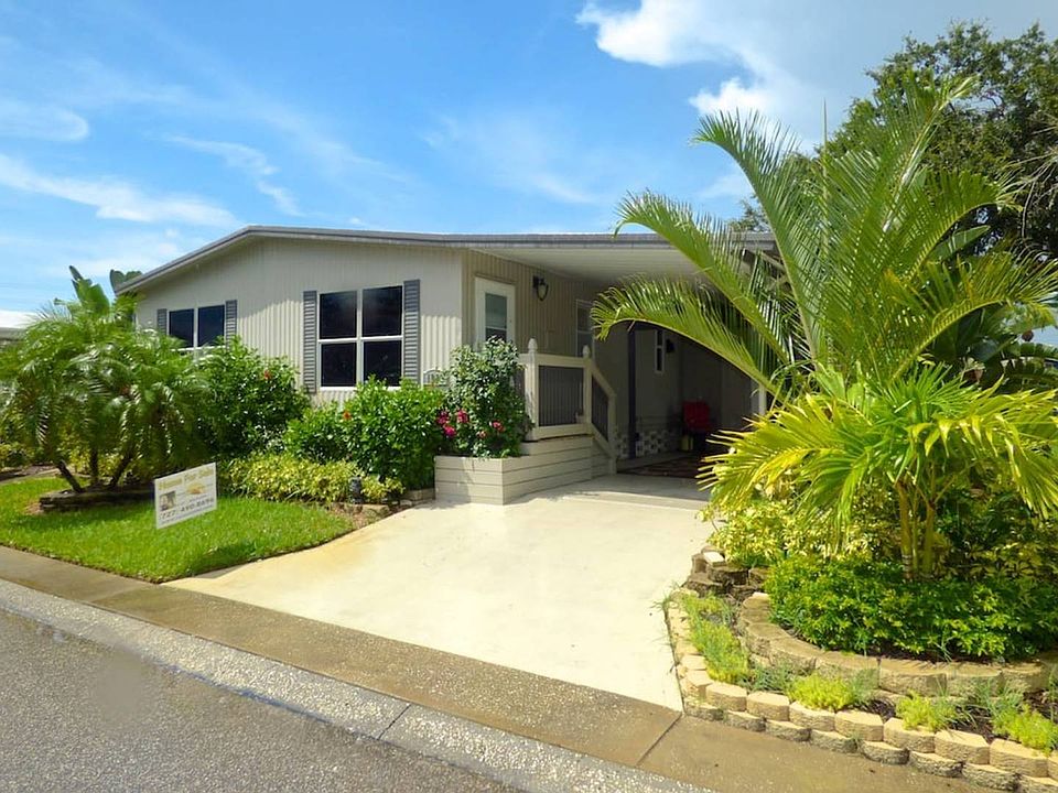NO EXPENSE SPARED! This One Bedroom, One Bath Double- Wide Home is Renovated with all Top of the Line Materials. Two bedrooms were converted into one Large Master Suite. The Home is located in Tarpon Glen, a desirable 55-Plus Community. The Floors are all redone with 3/4 inch plywood underneath. The Carpet is only one year old. The Bedroom has New 3/4 inch Drywall Walls. The Kitchen in New and the Bathroom is New. The AC is a mini-split system with remote controls that includes a heat pump for heating and cooling. This System is Very Efficient and Quiet. All Electrical has been updated. The Windows are tinted throughout the home. The Home has a Spacious Open Floor Plan. The Large Living Area is Open to the Beautiful Remodeled Kitchen. The Kitchen was All Stainless Appliances including a Bosch Dishwasher. The Cabinets and Countertops are New. There is a Spacious Pantry next to the Refrigerator and there is Room for a Small Dinette Table next to the Window. The Very Large Master Suite has room for your King Size Bed and all your furniture. There is also plenty of room for a small office area or for a Separate Sitting Area. The Bathroom was Redone with Beautiful Tiled Walls and Floors. The New Vanity has plenty of cabinet space underneath. There is a full size Step-In Shower. The back of the Carport makes a wonderful area for a Covered Patio. There is $10,000 worth of Beautiful Landscaping, which gives you a Private Oasis to enjoy the Florida Breezes in the evening. The Large Shed has plenty of shelving and includes a Washer/Dryer Hook-up. An Additional Patio is behind the Home along with a Second Shed. The Roof was Sealed last year. A Very Active and Desirable Park in Tarpon Springs -- Tarpon Glen, a 55 Plus Community. LOW LOT RENT OF $531 which includes water, sewer, trash, lawn and all the park amenities. One Indoor Cat Only Please. Amenities include a Heated pool, shuffleboard and a beautiful Community Clubhouse where there is always something going on. The entrance to the park is located right on the Pinellas Trail. After you buy the home, you can rent this unit out on a three month basis. Conveniently located to hospitals, shopping, restaurants, beaches, parks and more...Just minutes to the Sponge Docks! Boat and RV Storage on property. ----------------------------- Cash Only -----------------------------