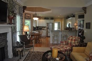 Stepless ranch with full basement and court yard entry garage situated on gorgeous golf course lot in sought after Towne Lake Hills East. 4 sided hard coat stucco, granite counters and stainless steel appliances in kitchen. Vaulted great room w. gas starter fireplace leads to deck and screen porch with golf course views. Master offers a sitting area and granite counters in master bath. Very neutral decor throughout and move-in ready. Basement has large bedroom and rec room professionally finished and there is still lots of unfinished space for storage.