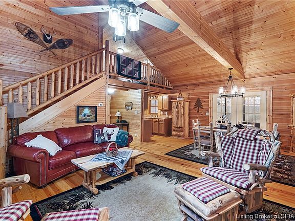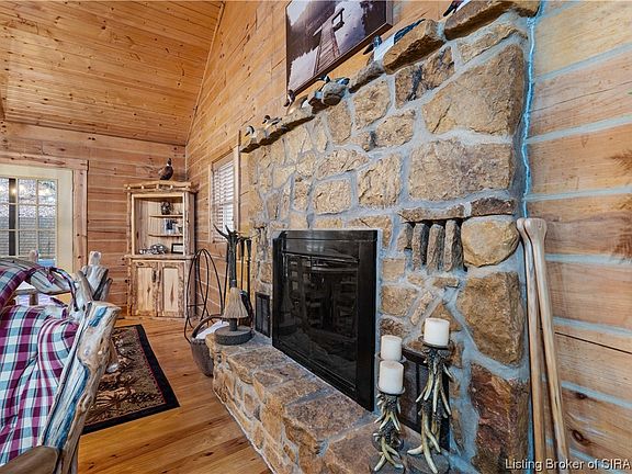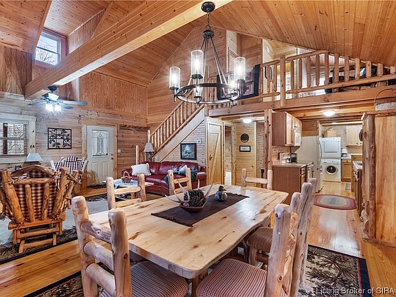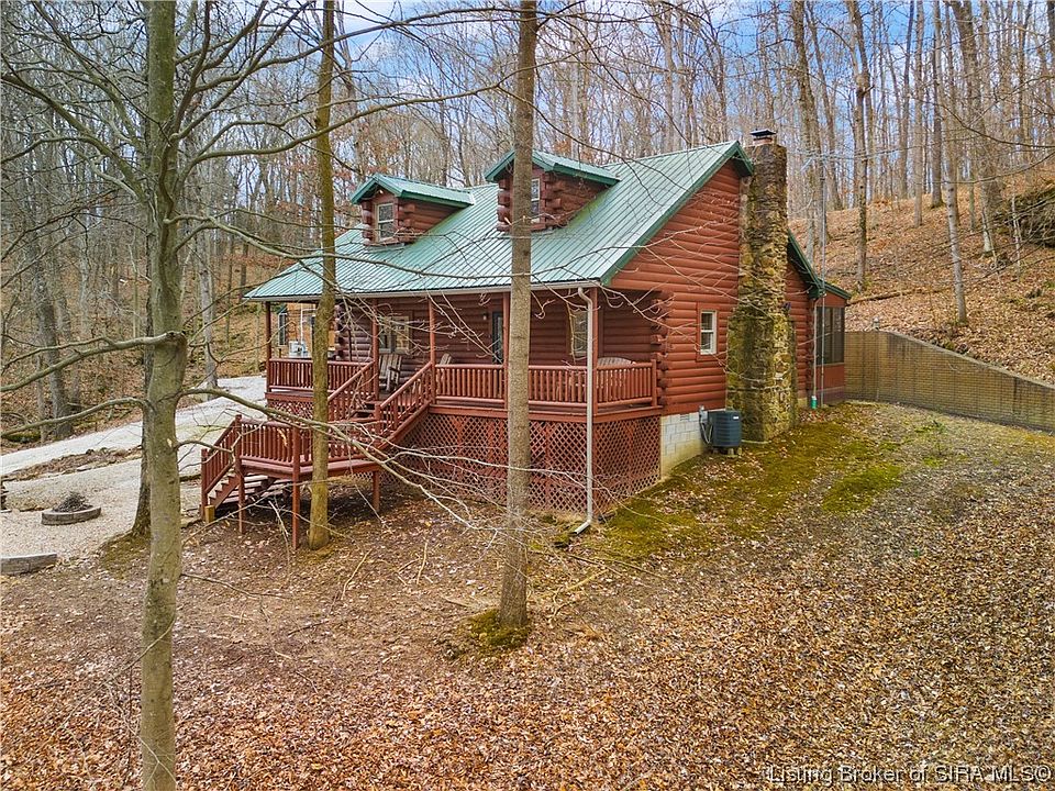 Nestled on a wooded lot, this beautiful log cabin near Patoka Lake main entrance overlooks a stunning rock face, making it the perfect haven for those seeking a retreat. As soon as you step foot into this gorgeous property, you will be greeted by the warmth of the cozy interior. The highlight of this cabin is its 3 spacious bedrooms and 2 full bath, providing ample space, with vaulted ceilings and a magnificent, stacked stone fireplace, this cabin exudes a charm while still offering all the modern amenities you could want. Extras include the laundry/mud room, whole house vacuum system, all appliances remain PLUS all custom furniture remains! In addition, this cabin also boasts a large covered porch and screened back porch where you can sit and bask in the beauty of the surrounding nature. Situated in the heart of Patoka Lake recreational area, you can easily access all the activities the lake has to offer. From fishing, kayaking, hiking and birdwatching, you can have a fun-filled day exploring. And at the end of the day, you can come back to your private oasis and unwind in the serene surroundings. The outdoor area includes a firepit area. In addition to its picturesque location, this log cabin is also a great investment opportunity with its prime location and beautiful features. As the demand for vacation rentals in this area is steadily increasing, you can choose to rent out this property and earn a steady stream of income.