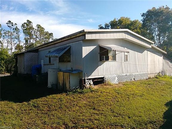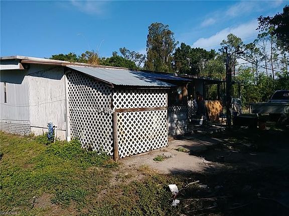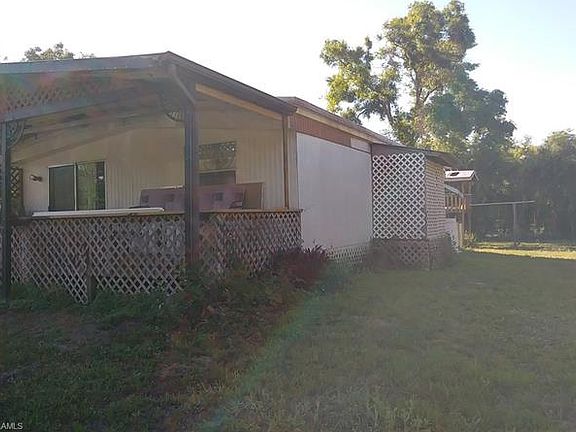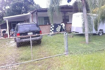Double wide mobile home in nice quiet Buckingham area, fully fenced (with double gate) on a corner lot. Just under 1/2 acre. Lots of tropical plants, 3 honey bell orange fruit trees & 1 mango tree. Outside screened in front porch has a handicap accessible ramp. New front door - replaced with a 'house' door, A/C & hot water heater newer (2-3 years old). 2 beds, 2 full bath, family room, dining area, sliders to front screened in porch, and slider to side deck, also screened. Kitchen has lots of cabinets and counter space, pantry, & large built in wall unit w/extra cabinets off the kitchen. Master has large walk-in closet. Another great feature is the outside working shower. Shed in yard for extra storage. Larger storage area right outside the main door to the house, which can be locked. Extra running refrigerator in there currently & stays with the property. Pitcher pump in yard needs minor repair. Streetlamp on property works. Electrical cord runs around house so it can be connected to a generator if need be. Gray water drains out to yard.