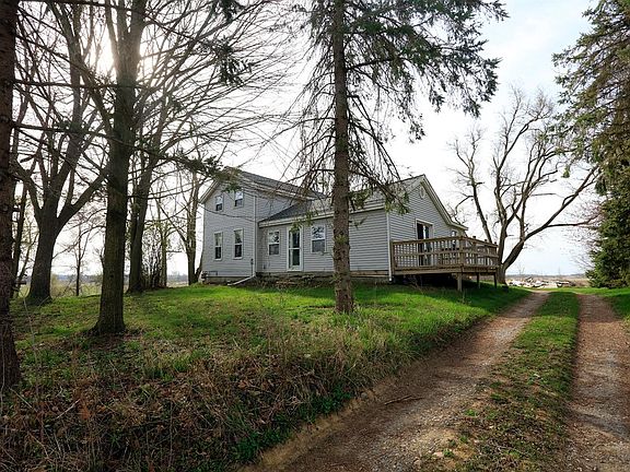 Country living, very private! Beautiful, 5 acres with maple trees, lilac bushes, trumpet trees, pear trees.. A wonderful piece of property with a deck to sit and admire it all! Three bedrooms 1 bath handicap accessible farmhouse with new roof (2 yrs) and central air. Kitchen boasts pantry and unique double sided hickory cabinets. Large dining area off kitchen with french doors to living room. Main floor has a study room which could also be used as 3rd bedroom.