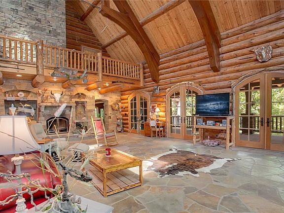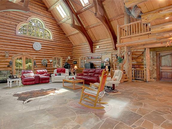 Spectacular 9,550 sq. ft. log and stone estate featuring 3 levels, smart wired, elevator, mother-in-law room, 5 fireplaces, walk-in closets, 44x36 great room, Pella windows, limestone cypress floors, geothermal heat/air. 3800 sq. ft. of outdoor living with multiple decks and porches. Public and well water. Up to 200 acres available. If you like living large and secluded, come see this phenomenal home! Trades possible. Agent owned. You must see this home/property to fully appreciate it!