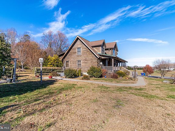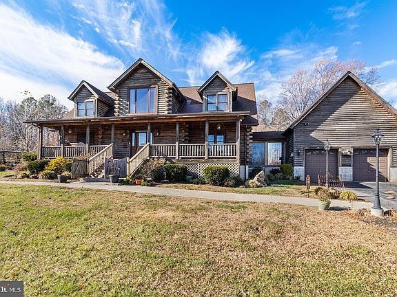 Nestled on over 3 acres of serene landscape, this captivating Cape Cod-style Log Cabin seamlessly blends rustic charm with modern luxury. Boasting 4 bedrooms and 3.5 bathrooms, this property offers a lifestyle of comfort and tranquility. The main-level master suite is a luxurious haven, featuring a private back porch for moments of relaxation. The accompanying bathroom features a jacuzzi tub and separate shower, providing the perfect retreat within your own home. The heart of the home is the kitchen, featuring granite countertops, stainless steel appliances, and a pantry. Whether you're a culinary enthusiast or prefer casual meals, this kitchen is well-equipped to meet your every need. Off the kitchen is an enclosed storage breezeway connected seamlessly to the 2-car garage, offering both convenience and ample storage space. Upstairs features 3 bedrooms, 1 with an amazing picture window and 2 with dual walk-in closets and hardwood floors under the carpet, and a full bathroom. The second-story balcony overlooks the living room with a cozy wood-burning fireplace, providing a stunning view of the cathedral ceiling and contributing to the open and airy atmosphere. The fully finished basement is a versatile space, complete with a full kitchen, full bathroom with multi-jet shower, living room with a gas fireplace, large laundry room, and an optional bedroom. Ideal for guests, a home office, or an entertainment haven, this level offers endless possibilities. Step outside to enjoy the large front porch or the back porch off the kitchen. These outdoor spaces provide the perfect setting to entertain guests, enjoy your morning coffee, or simply revel in the peaceful ambiance of your private oasis. Explore the expansive grounds that include a large front pasture leading to the backyard. Here, you'll find a 3-stall livestock barn, water line, a fenced-in chicken coop, and a dedicated area for your furry friends with a heated/air-conditioned dog house. This property offers more than just a home; it presents a lifestyle. Experience the tranquility of country living with the convenience of modern amenities including new HVAC and propane furnace systems, and a back-up generator. Located in a sought after school district and conveniently located for easy commuting to the numerous Naval & Joint Military bases in Southern Maryland and Virginia.