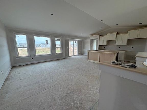 The ever popular Justin plan features an open vaulted living dining kitchen area with center isle and large walk in pantry. The split bedroom design offers privacy for all and the laundry room is connects to the master closet to make laundry day a breeze! The full unfinished basement offers room to expand with potential for two more bedrooms another bath and a large family room area. The home has been decorated by professional decorators with the most up to date neutral decor and the builder is working hard to get this home ready by Mid-Sept, but may be possible for an earlier close, let us check for you!