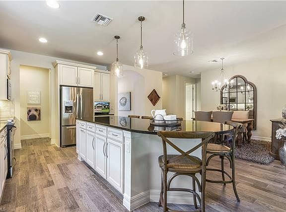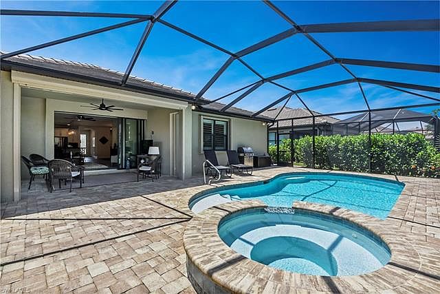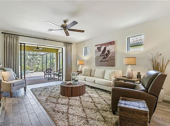 Stunning home in the master-planned community of Bridgetown! This home looks just like a model home-gently lived in & meticulously cared for. Offering a great room & split bedroom design w/ an extended rear lanai, this 2 bedroom+den home is perfect for a Snow Bird or year round FL resident. Gorgeous open concept kitchen offering an island w/ a wrap around breakfast bar at one end, wood cabinets & backsplash, new dishwasher that is elevated, a butler pantry w/ beverage cooler, under cabinet central vac vents, and a walk-in pantry. Enjoy the SWFL sun on the rear lanai that features a heated saltwater pool (27x40) & spa, pavers, & has a preserve view. Recent updates & features include: outdoor lighting, landscaping, new plumbing on exterior, new impact glass front door, high-end ceiling fans & kitchen island pendants, window shutters & shades including an electric shade for the kitchen window, Hadinger carpet (& Hadinger ramp up on carpet), and Kinetico water filter drinking system, dimmers & LED lights, and an epoxy floor in the extended garage. The home has 2 surge protectors (home & pool), and can be hurricane ready in less than 5 minutes w/ Storm Smart shutters & shades.