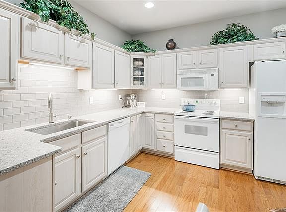 ADORABLE 1-STORY END UNIT w/ 2-Car Garage & SUNROOM. OPEN FLOOR PLAN*Gorgeous Kitchen w/ New Quartz Countertops/Glass Backsplash, Touch Faucet, 16 gauge SS Sink w/ Quiet reversible Disposal*Beautiful Oak Flooring in Family Rm, Kitchen, & Laundry Rm *Master Bdrm w/ Trey ceiling*Updated Master Bath& 2nd Full Bath*Massive 2nd Bedroom w/2 Closets & Sitting Area*Family Room- Vaulted Ceilings&Wood Burning Fireplace w/Gas Line Fire Starter*Custom Built-in Storage Cabinets on 3 Garage walls & still Room for 2 Cars!!! Brand new HVAC *New 50 Gallon Water Heater, New Garage Door & Opener w/ Keyless Touchpad * Attic renovated for lots of Storage & new Heavy Duty Metal Ladder SUNROOM IS ADDITIONAL SPACE NOT INCLUDED IN THE 1,350 HLA SHOWN *Gas Line Stubbed in for Stove. Exterior maintenance (incl. roof), Lawn Care, Water, & Trash are included in HOA dues! Close proximity to Shopping, Dining, Entertainment, Medical Facilities. Easy access to I-485, I77, Pineville, Ballantyne, Medical facilities.