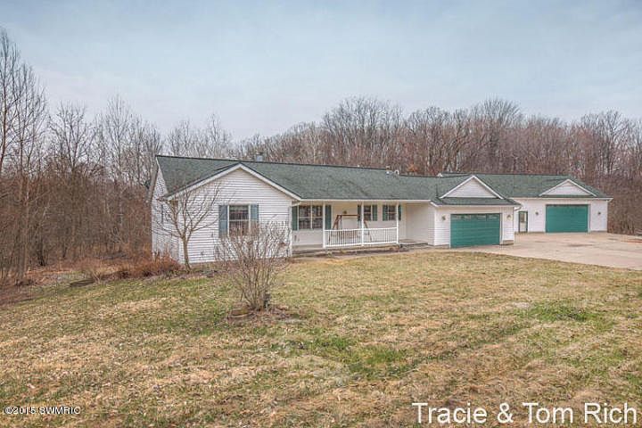 This is truly a must see if you are looking for acreage, a huge barn and a wonderful home! The well appointed ranch offers many updates and amenties. As you enter you will find a nice sized living room w/ a gas fireplace, dining area with french doors to a 1200+sqft. deck! The kitchen offers stainless steel appliance, large pantry and solid surface countertops. Also found on the main floor is a half bath, laundry, 2 big bedrooms one with access to the full bath with dual vanity. The lower level offers 2 more bedrooms, office space, full bath, family room plus a storage room. This home has tons of storage with 2 pull down attics plus a 32x48 barn with its own heat, air, bathroom, surround sound, wet bar with 2 sinks and a 10 ft overhead. Private views off the deck complete this home.
