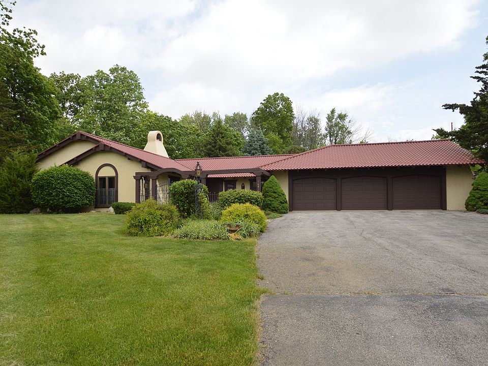 One of Fort Waynes most unique homes. Rustic Spanish design with rich woodwork, ceramic tile & stained glass windows. The heart of the home is the chef’s kitchen with Grabill cabinets, Graber stone counters, center island with breakfast bar, eat-in area, and all stainless steel high-end appliances including 2 Jenn-Aire cook tops, 2 Thermador convection ovens, Advantium Hi-tech oven, built-in refrigerator, & Marvel wine storage system. Formal dining room is reminiscent of the California Missions, being elevated & surrounded by a wall of archways. Formal living room plus sunken conversation pit with floor-to-ceiling copper fireplace. Huge office/library features timber-beamed ceiling, built-in shelving and a private entrance…perfect for a home business (office desk stays). Family room offers cathedral beamed ceilings, massive stone fireplace, and wall of windows overlooking the lush back yard. True master suite with sitting room, fireplace, Graber stone shower, double vanities, 2-person Jacuzzi tub, and walk-in closet. Finished lower level with rec room is perfect for kids/teens to hang out. Private 1.5 acre setting offers mature landscaping, 2 courtyards, flagstone patio, and in-ground pool (no longer in use). Additional amenities include 3 furnaces & C/A units. Great location in LaCabreah close to Dupont corridor.