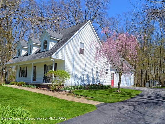 Immaculate 2479 square ft two story cape style home on 1.16 acres, located on the end of a private road in Slanker Stowaway Estates, Fowlerville schools, Handy Township. You'll enjoy the large cover porch that runs the length of the home. First floor primary suite with walk in closet and full bathroom is sure to please. Family room with a gas fireplace connects to the dining area showcasing a wall of built-ins. The slider out to the back deck overlooks the park-like backyard. Oak kitchen with island workspace. First floor laundry with utility sink and half bath located upon entry from the large side entry garage. All appliances stay including washer and dryer.