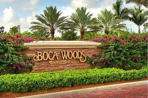 Boca Woods Country Club. Exceptional property located in a cul-de-sac on Pine Bark Lane. The moment you enter the home you are greeted by an expansive golf course view. Updated home features three bedrooms, three and one half baths ,two car plus golf cart garage, updated kitchen with quartz countertops, SS appliances, island, eat in kitchen area, dining room, family room, living room. Enjoy the indoor/outdoor lifestyle this home offers with an oversized patio area & pool overlooking a magnificent golf view. Resort style living w/two 18 hole golf courses, tennis facility, pickelball, new state of the art fitness center, spa, game room, fine/casual dining & more! Mandatory membership $95,000 ($20,000 equity refundable when you sell home) paid to BWCC 10 days prior to closing.