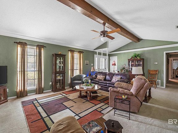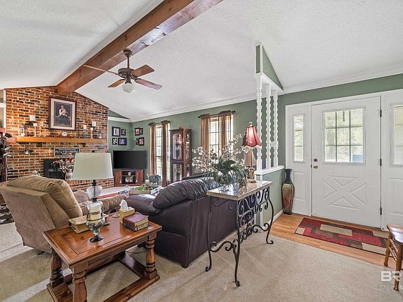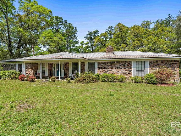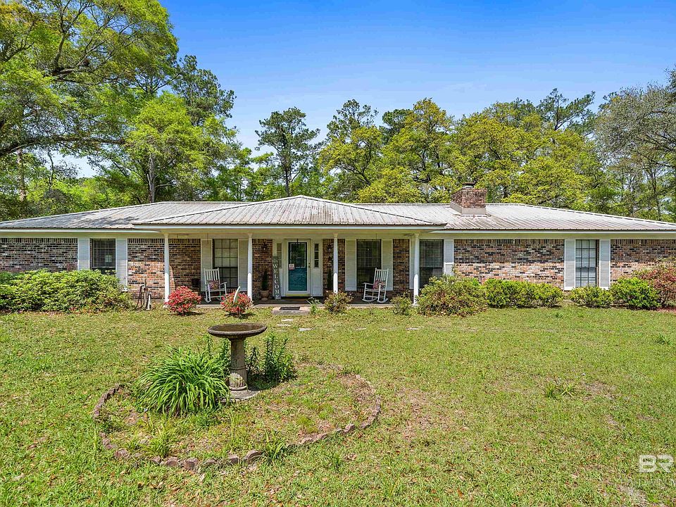 One level brick ranch home with a metal roof on large level lot just over an acre. The front yard is lined with large azaleas for privacy and is a show place when in bloom. Its all about location - close to Fairhope and Foley - Weeks Bay Conservation, bike trail and nature preserve across the street, boat launch at the bridge. This large lot has two carports for boats and toys plus an oversized garage (27'.5 X 24'), storage building (20" X 11'). The Great Room features a brick Woodburning fireplace, cathedral ceiling and open to eating area. Kitchen has plenty of workspace and pantry. The Dining Room could be used as an office. Extras include fenced back yard, HVAC inside 3 yrs. old and outside unit 10 yrs., half bath located in garage, septic was serviced in 2020, well water for sprinkler system in the front yard, lot survey in file. Property is located in an area that may qualify for USDA financing to an eligible buyer. Property includes PPIN 26026. Buyer to verify all information during due diligence.