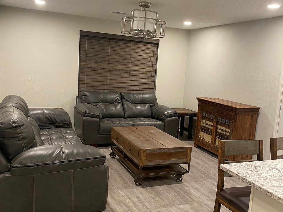 Brand new construction, 1Br/1Bath, vinyl plank floors, tile shower, huge kitchen with granite countertops. All new appliances: refrigerator, stove, microwave, dishwasher, washer and dryer included. Private road entrance with parking. Water, sewer, electricity and lawn care included in rental price. Furniture shown is optional with additional fee. Pet allowed with additional fee.