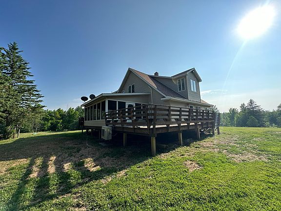 Come see this HUGE country home, nestled on 40 acres. Entering the home, you'll find an open kitchen, complete with lots of cabinet space and an island. From there you'll find a living room, a convenient bathroom, and a bedroom. Step onto the back porch to discover the sauna. Upstairs features a second family room, the many windows and large vaulted ceiling let in an abundance of natural light. Down the hall is the primary bedroom, with walk in closet, reading nook and attached bathroom. Another bedroom and sewing room/office can also be found upstairs. The basement impresses with 8+ ft tall ceilings, housing a spacious bedroom, bathroom, laundry room, and a utility room. A 2nd set of stairs leads through a cellar up into the attached 2-car garage. A wrap around deck with screened porch is perfect for hosting. The barn and two sheds offer ample storage space. New mound system. Additional acreage available. With so many more features to list, schedule your showing today!