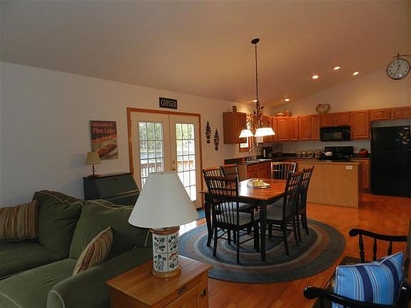LAKE LIVING at its BEST on ALL SPORTS (660 acre) PINE LAKE located on LONGPOINT DRIVE! NO STAIRS TO THE LAKE with 72' of superb LAKE FRONTAGE facing Lake #2. This custom built RANCH WALKOUT cottage was built in 2005 featuring TWO COMPLETE SEPERATE LIVING AREAS (family and living room), 2 KITCHENS (one efficiency), 3 BEDROOMS and 2 FULL BATHS. Beautiful wood trim, solid core doors express the ATTENTION TO DETAIL throughout this cottage THAT IS IMMACULATE FROM THE INSIDE/OUT. The Main Level is perfect for hosting LARGE FAMILY GATHERINGS in the OPEN FLOOR PLAN featuring A LARGE KITCHEN with beautiful oak cabinetry, center island, and large dining area overlooking the lake. The living room features a GAS LOG FIREPLACE with OAK MANTEL. Main floor laundry room is just an extra bonus. IN T HE LOWER LEVEL you will find the 3rd BEDROOM, efficiency (2ND) KITCHEN with HICKORY CABINETS, FAMILY ROOM, FULL BATH, and Workshop/Storage area.