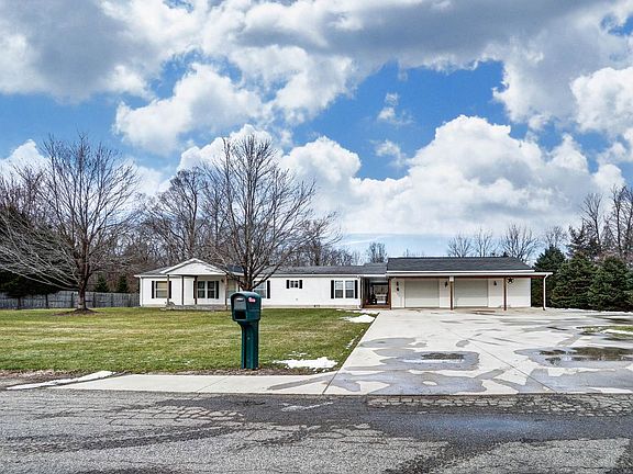 Quiet country location. Spacious well maintained Split floor plan ranch on 1 acre.Stone fireplace with gas log in family room.Master bedroom with master bath features garden tub, separate shower and new vinyl floor covering.Newer Stainless steel appliances,plenty of cabinets and breakfast nook are some of the pluses you'll enjoy about the kitchen.Utility room has half bath an outside entrance to 12 X 24 enclosed back porch. An 8X 31 covered wood deck connects the oversized 3 +car garage to the home.This Man cave has wood heat as well as propane ,knotty pine walls, separate 100 AMP service and 1/2 bath.Great place for entertaining ,or shop area as the maintenance free cement drive with extra pad for travel trailer.offers plenty of parking for your vehicles or guests.Home also offers a 24ft above ground pool with 16 x32 wrap around deck new within last 2 yrs. There are 2 additional storage sheds included. Home has 200 amp service an 6 inch side walls. Deep crawl space that is dry suitable for additional storage with plastic liner.