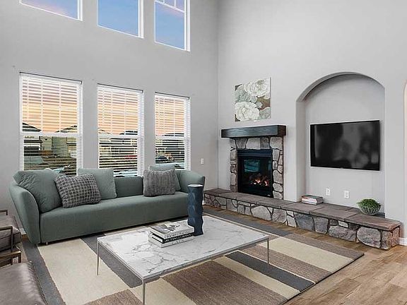 This spacious floor plan does not disappoint and has room for everyone. On the main floor you will find the Primary Suite that has private access to the backyard and its very own private three-sided fireplace. The family room has astonishing 18 Ft Ceilings and tons of windows to let in natural light. The kitchen is well upgraded and conveniently located near the home office and laundry room that has a utility sink. As you travel upstairs you will notice the stair lighting leading to the large open loft and two additional bedrooms which one bedroom has its own suite. The entire upstairs is carpet free too. The finished basement has upgraded 9 ft ceilings, 3 additional bedrooms, and plenty of space for a game area, living room, and a space for a home gym. In the future there is room to add a wet bar as the plumbing is ruffed in. The home has a security system, is pre-wired for a home theater and has automated window coverings. This home has some 36" door opening, assistance bars in the master bath, and a 4-car garage. Schedule your showing today.