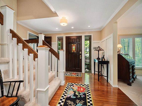 • 1st Bdrm En Suite, Bookcases, Built-in Desk, Cathedral Ceiling(s), Ceiling Fan(s), Beamed Ceilings, Walk-In Closet(s), Laminate Counters, Stone Counters, Crown Molding, Eat-in Kitchen, Entrance Foyer, Kitchen Island, Natural Woodwork, Double Vanity, Formal Dining Room, Custom Cabinetry