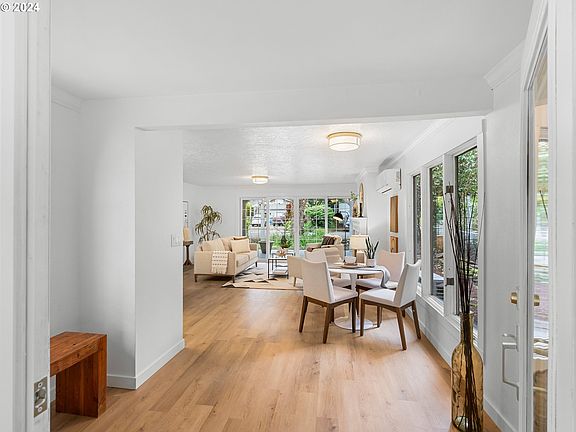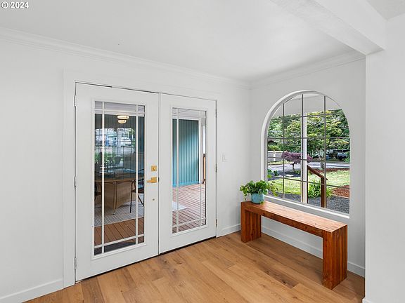 Welcome to this light-filled, single-level home with a perfect blend of modern updates and classic charm. Featuring 3 spacious bedrooms and a beautifully remodeled bathroom, this property is ideal for comfortable living and entertaining. Nestled on an oversized, corner lot, the home boasts a freshly painted interior and exterior, new luxury vinyl plank flooring throughout, a gas fireplace, two glass sliders, french doors, and a freshly cleaned and treated roof, ensuring peace of mind for years to come. The remodeled kitchen is equipped with newer appliances, quartz countertops, and a tiled backsplash. The bathroom has been thoughtfully updated with new tiling throughout, a new toilet, and a new vanity. Enjoy the benefit of some newer windows, a mini-split heating/AC system, and a new gas hot water heater - all of which earned the home a Home Energy Score of 9! Outdoor living is a highlight, with three decks, two of which are covered, providing ample space for entertaining or simply relaxing. The yard is a gardener's dream, featuring mature landscaping and garden beds. Hobby enthusiasts will be delighted by the attached workshop featuring cabinetry, countertops, and ample storage. Within walking distance to both Jackson Middle School and the Loll Wildwood Natural Area, this home is sure to delight. [Home Energy Score = 9. HES Report at https://rpt.greenbuildingregistry.com/hes/OR10228931]