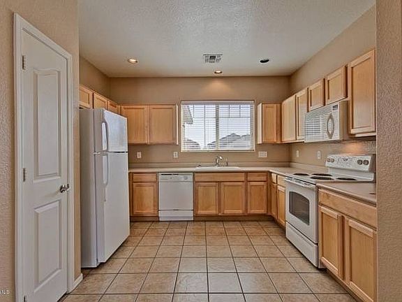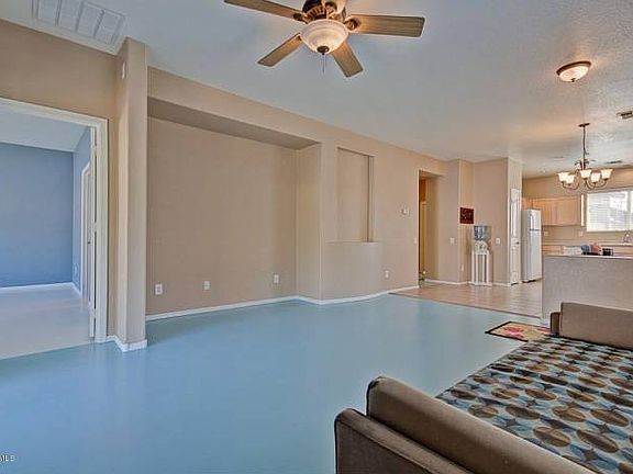 Great room has painted concrete and picture windows and entertainment center nook! Eat in kitchen has light neutral tile with picture windows. Kitchen has a plethora of natural wood cabinets with roll out shelves in bottom cabinets. Guest bedrooms are complete with picture windows and ceiling fans. Full guest bathroom with single sink vanity. Laundry room has convenient access to garage. Large master suite with painted concrete and multiple picture windows. Full master bath with double sink vanity and large walk in closet with plenty of storage room. Gorgeous backyard has covered patio and lush green artificial grass.