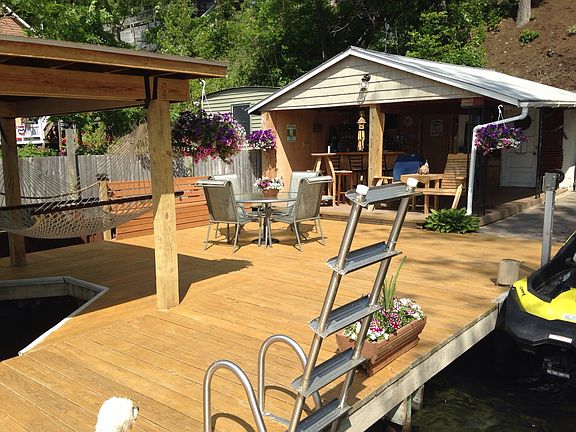 Perfection=Keuka Lake "Come & Go" Maintenance Free Living, Sunset Style close to Hammondsport! Elegant 2003 Contemporary with grandfathered oversized dock/deck with covered boat slip and beach side bar/bungalow for all your entertaining needs! Do you prefer your sunsets dockside, on your covered porch or side brick patio? The choice is up to you! Gorgeous lake views from every corner! Attention to detail through out with corner gas fireplace,crown molding,full dormer finishes,Brazilian cherry floors, maple cabinetry,granite counter tops,stainless appliances, ceramic tile, accent/recessed lighting,central A/C...the list goes on and on! Plenty of parking for you and your guests! SLEEPS 12 COMFORTABLY! KEUKA LAKE AT AN AFFORDABLE PRICE! DON'T DELAY! EARLY BIRD GETS THE DEAL OF THE YEAR!