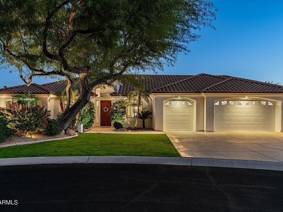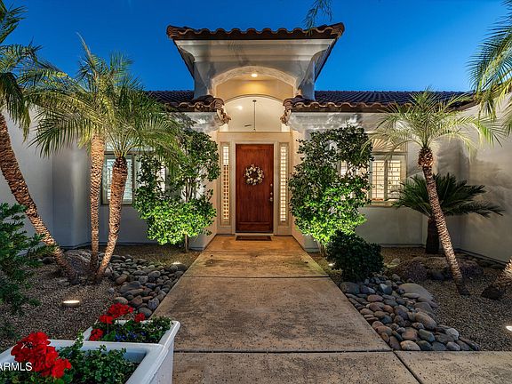 An extraordinary, custom Santa Barbara ranch-style 2x6 constructed home located in the highly sought-after custom home community of San Serena Estates right in the sweet spot of Scottsdale - renowned for its upscale residences and scenic landscapes. Privately sited on over a third acre culdesac lot with lush tranquility revealing timeless style, offering the perfect blend of sophistication and privacy. This luxurious and captivating single-level residence spans 3403 square feet with a split floorplan and accommodates 4 bedrooms, a den and 3 baths featuring unrivaled craftmanship with exquisite design throughout. Enduring elegant details and amenities are highlighted with a massive 8' entry door, sand finished stucco, fresh exterior paint, stucco-wrapped eaves - crowned with an architecturally preferred hip-roof design and volume ceilings with expansive windows and plantation shutters to provide abundant natural light. An updated chef's dream kitchen with premium stainless appliances including a 5-burner gas cooktop, dual ovens and custom cabinetry with an ideal pantry and a colossal island enjoying twin wine coolers perfect for culinary creations and entertaining. Experience the primary bedroom as the perfect retreat highlighted with a cozy gas fireplace, a sliding glass door to the rear patio and an on-trend spa-like bathroom relishing a jetted soaking tub surrounded in quartz, a large walk-in shower and an appropriate walk-in closet with built-ins. Designed for seamless indoor/outdoor resort-style living amidst meticulously landscaped gardens with lush surroundings and a refreshing heated Pebble-tec pool with multiple outdoor lounging areas, an outdoor shower and attractive sand-finished stucco block fencing. The well-designed stacked-stone fireplace and delightful covered sittings areas with Sonos surround sound provide the ultimate relaxation for comfortable gatherings and complete the perfect sanctuary. Amazing extended-length 3-car garage with abundant cabinetry, side-door exit and the well-designed laundry room with plenty of cabinets, counter space and proper sink also add to its functionality and attraction. Conveniently close to premier golf courses, fine dining, boutique shopping, first-class healthcare facilities and top-rated Scottsdale schools with nearby city parks and multiple accessible mountain preserves and easy access to the 101 all provide necessary conveniences and contribute to the coveted Scottsdale lifestyle you deserve.