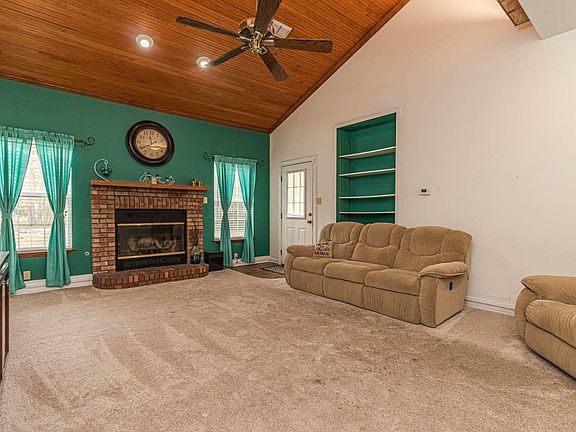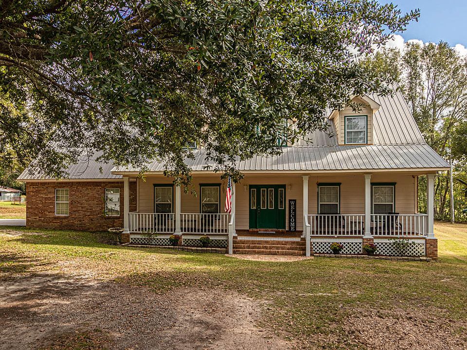 Check out the front porch on this adorable two story home sitting on two cleared acres. Plenty of room for family gatherings and outdoor activities. Above ground pool is included and already covered for the season. First floor - master bedroom, sunken living area, formal dining room, breakfast area, kitchen, laundry and half bath. Brick floors throughout the downstairs with the exception of the bedroom and living room which have carpet. Upstairs feature three large bedrooms, bathroom and an office nook. Take the virtual tour then call to make an appointment to see this great property.