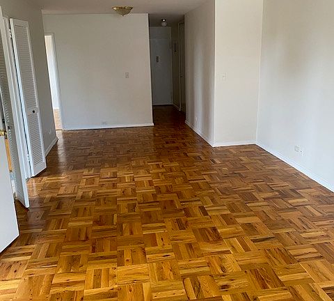 Jr 4, 2 BR, 1 Full Bath, high-rise, central heat/air-conditioning, 24-hour doorman, terrace, half block to express subway, 2 blocks from LIRR, next to library, pet friendly, parking available.
