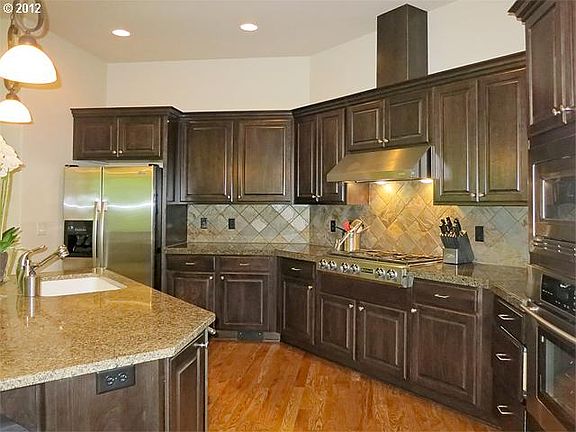 This sophisticated Cedar Mill Traditional situated at the end of the cul-de-sac backs to Jordan Woods and borders a serene protected natural area. With a community garden, playground and expansive park with trails just steps from the front door, this location is the ideal combination of fun, safety and privacy. Gleaming hardwood floors throughout much of the main level. Entry features a carpeted formal living area with built in window seat and shelving, gas fireplace and vaulted dining room. Generous window placement provides an abundance of natural light and architectural beauty. Archway leads to elegant gourmet kitchen with slab granite counter tops, stainless steel appliances, dark espresso cabinets, tiled back splash and kitchen island with bar seating. Open family room with gas fireplace neighbors a second dining area that exits to fully covered deck space for effortless summer entertaining. Spacious master suite with vaulted ceilings and ample natural light. Master bath arranged for luxury with separate substantial shower and soak tub. Sizable master closet for maximum storage and comfort. Upper level features second bedroom with attached bath for guest convenience. Open light and bright den can be used as fifth bedroom, play or work space. Backyard is ideal for gardening with raised beds, BBQing or simply soaking in the view.