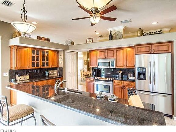 Beautiful 4 bedroom, 2 1/2 bath home in the gated Cypress Links community in Gateway Golf & Country Club! This impeccable home has a formal living and dining area that have been professionally decorated and a family room with lots of windows to view the beautiful landscaping including wild orchids and staghorn ferns. Numerous recent top quality upgrades include a gourmet kitchen, built-in wine cooler, granite countertops, stainless steel appliances, and custom wood cabinets. Bathrooms were also redone with custom wood cabinets and walk in showers with custom tile. Three bedrooms have custom closets for maximum storage and hanging space. Other great features include crown molding, heated swimming pool, brick pavered driveway and lanai, new Trane air conditioning unit, and gutters . All furnishings (except bedrooms) are negotiable. Sellers willing to lease back short term. Gateway is a premiere community in SW Florida close to shopping, restaurants, airport, JetBlue stadium, and more.
